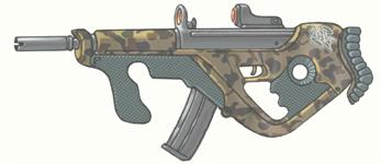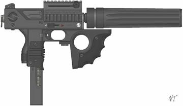 A commonly seen smg similar in shape and performance to