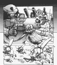 E-SWAT has two main services, Special Forces and Anti-terrorism and cyborg crimes investigation. The first is mainly comprised of assault and E-SWAT is the best in the world at this type of activity. Their constant training and close teamwork provide the tools they need to accomplish any task presented. E-SWAT assault teams are routinely loaned to other countries and are the main means of enforcing world peace by Olympus. Cyborg investigations are generally more subtle and if possible will be performed prior to assault and arrest. E-SWAT often operates in foreign countries with "plausible deniability" giving operatives free reign in their actions. However, if any member of E-SWAT acts in too corrupt a fashion Internal Affairs will infiltrate the unit and investigate and prosecute if necessary. During lulls in assignments E-SWAT operatives will sometimes be transferred to other branches, usually as undercover agents. |