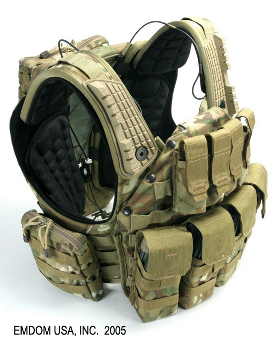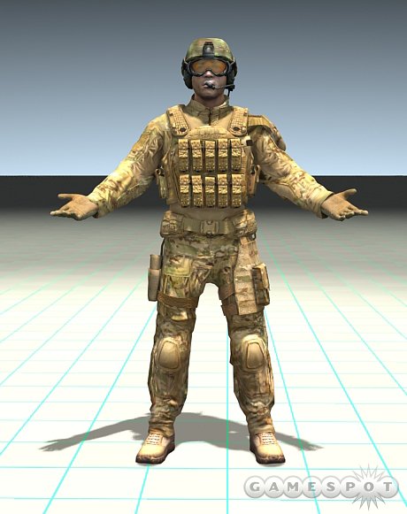 equipment:COMBAT KNIFE- (SEE BELOW FOR INFORMATION) CANTEENS- 2 1 liter canteens, made of plastic POUCH 1- 6 25MM FRAG GRENADES POUCH 2- Smart goggles w/ thermograph, ir, anti-dazzle, low light, tele-optics, and smartgun link, this is very compact, making the most of miniature electronic technology, and attaches directly, and fastly to the helmet POUCH 3- 3 semi-automatic handgun magazines (For special forces, the suppressor for the handgun will be stored here in place of 1 magazine) POUCH 4- can be used for anything (for special forces this pouch is replaced with a pouch for holding 2 magazines and the suppressor for the submachine gun) POUCH 5- 6 glowsticks POUCH 6- used for personal non-military items |