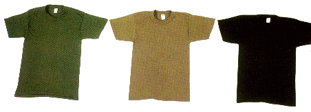 ![]() T-SHIRTS- 2 pair each of green, brown, white, black, (for female soldiers, sports bras are also available) |