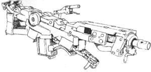 This strange revolver, built sometime in the 1990s, is Togusa's weapon of choice. It is chambered for the 9mm Parabellum cartridge and it's six round cylinder is hinged at the top of the frame rather than the bottom. The M207's hexagonal barrel is lined up with the bottom-most chamber for greater accuracy and the weapon's strange design is counter-balanced by a top mounted weight. It should be noted that the Mateba's greatest feature is its accuracy. Unfortunately, it is not as quick or as high powered as most automatics. Additionally, its design causes problems with loading, making it less than an ideal choice in situations where a lot of ammo is being expended. Features ergonomic grips and interchangeable barrels. 400eb |