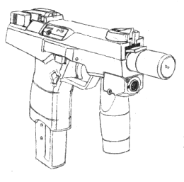 A standard light SMG used by Section 6. It is rugged 9mm SMG with many features, such as ambidextrous cocking. It is a common SMG and it is used the world over. The Section 6 version includes a laser aiming system. 520eb |