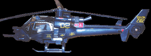 ARMAMENT: 4 AAM missiles, 20mm gatling, 12 shot 2" rocket pod x2.