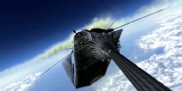 ARMAMENT: 6 forward firing and 4 rear firing AAM missiles in retractable pods.