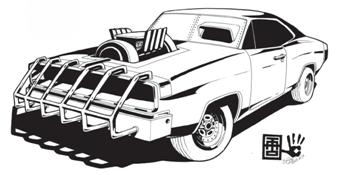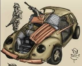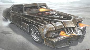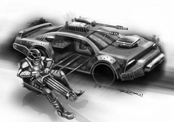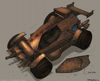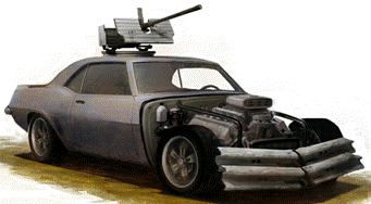 smg’s (forward facing), heavy armor plating, spiked wheels,