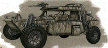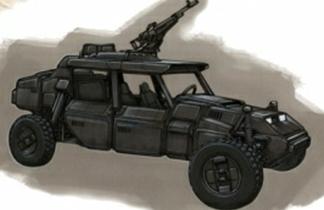 armor plating, police radio, dual 5.56mm gatling guns in