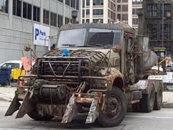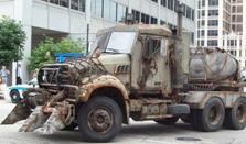 truck has been very heavily armored and reinforced.
