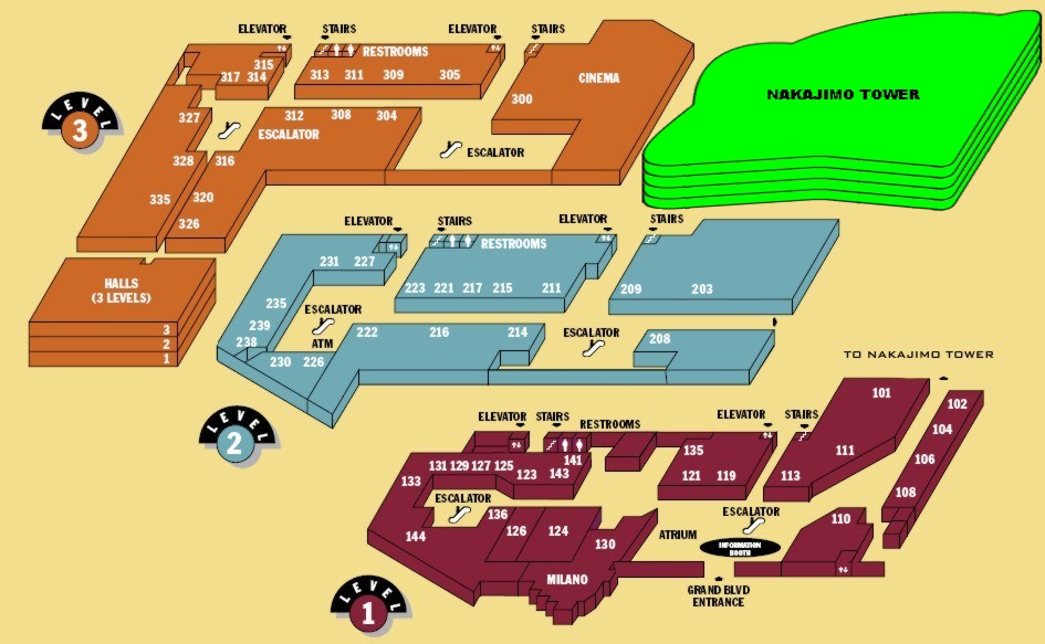 3rd Floor California Repertiore Theatre ....314 Bath and Body Works ..................317 boulevard blues ..............................327 N' Imports Fine Tobacco ..............304 Grystals Casual .............................308 Crown Center Cinema ..................300 Hopes Bridal Shop .........................335 Hopes Elegance ..............................326 Giancarlos Mens Formal..............328 Kalaidoscope ...................................316 Nakajimo Imports ..........................320 Jewelry Box Fine Antiques ..........313 The Kids Place ...............................311 Petite Sophisticate ........................304 Russian Arts Store ......................315 Victoria’s Secret ...........................312 Vinone’s ..........................................305 Wilderness Reflections ...............309 |