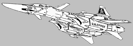 SPECIAL EQUIPMENT: military radio W/scrambler, ECM, ECCM, satellite uplink, full visual suite, ejection seats, damage control, chaff, Fire extinguisher, laser detector, 12 hours life support, auto-pilot, navigation systems, cybernetic linkage, military radar with target ID and look down, radar detector, laser communicator, chaff and flare dispenser, environment control, maneuver thruster system,