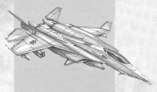 SPECIAL EQUIPMENT: military radio W/scrambler, ECM, ECCM, satellite uplink, full visual suite, ejection seats, damage control, chaff, Fire extinguisher, laser detector, 12 hours life support, auto-pilot, navigation systems, cybernetic linkage, military radar with target ID and look down, radar detector, laser communicator, chaff and flare dispenser, environment control, stealth capability,